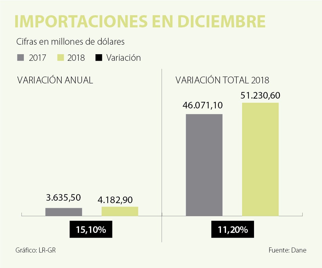 Con el resultado de las importaciones de diciembre, las cuales crecieron 15,1% y llegaron a US$4.182,9 millones, que entregó ayer el Departamento Administrativo Nacional de Estadística (Dane), se completó no solo la balanza comercial del último mes del año pasado, sino también los resultados anuales de comercio exterior.