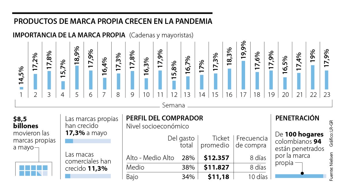 “En los primeros cinco meses del año, solo tuvieron un decrecimiento en una semana y fue de 0,3%, mientras que las marcas comerciales sí tuvieron baches por la cuarentena. La demanda actual de los clientes es tener productos de calidad con precios asequibles y las marcas propias los tienen”, expresó.