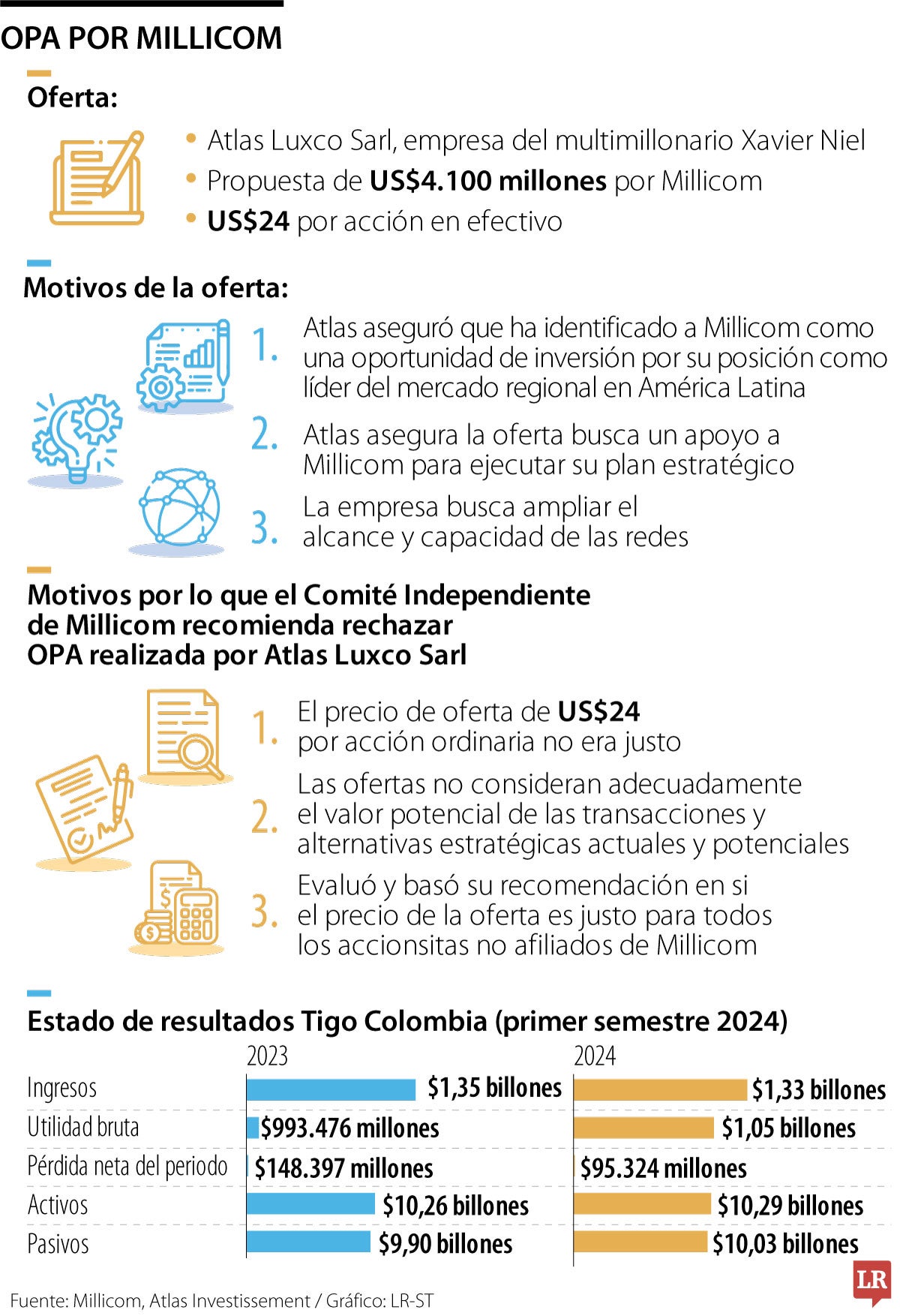 A inicios de este mes, Millicom, la empresa matriz de Tigo, recibió una oferta de Xavier Niel, multimillonario que está detrás de Atlas Luxco Sarl. Se trata de una OPA que busca la adquisición de acciones individuales a un precio de US$24. El proceso se está surtiendo en Estados Unidos y Suecia y la inversión total de la OPA fue estimada en US$4.100 millones.