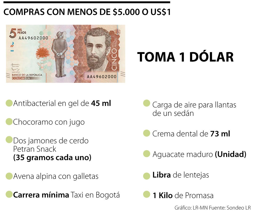 Por eso, en días en los que aparece el famoso meme de “tome un dólar” y de fondo se ve el billete de $5.000, LR hizo un ejercicio entre plataformas de domicilios y páginas de supermercados para ver qué había debajo de este nivel.
