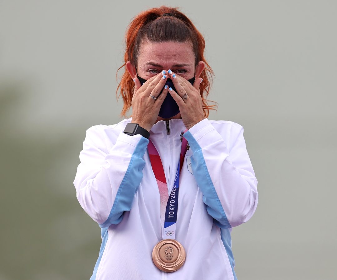 "Durante la final, cuando salió la quinta tiradora, pensé: no quiero estar una vez más en el cuarto puesto, así que tengo que conseguirlo", dijo la deportista de 33 años. "Es la primera medalla para mí y para mi país. Somos un país pequeño pero muy orgulloso".