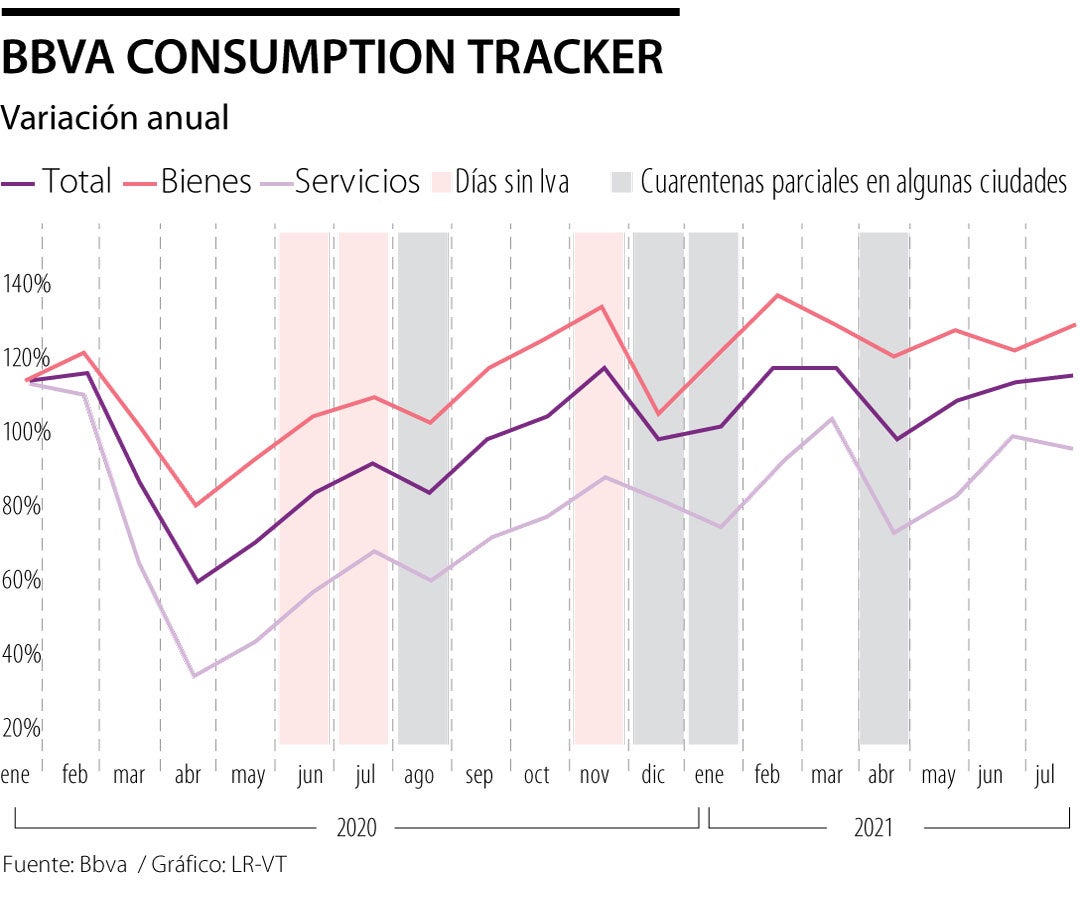 Bbva publicó el Consumption Tracker para lo corrido de julio. Este es un indicador que monitorea las transacciones de las tarjetas débito y crédito de los clientes del banco para medir lo Índices de consumo.