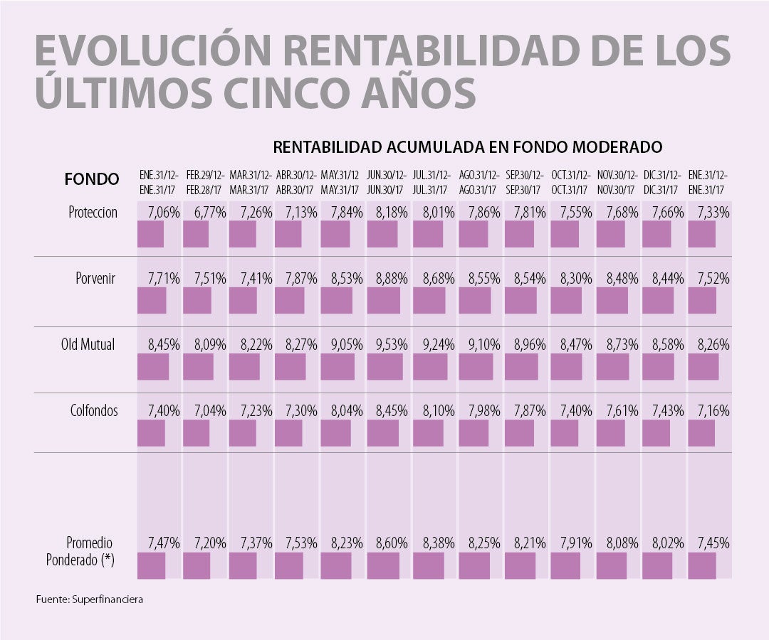 Al analizar los meses durante ese mismo periodo de cinco años, le evolución de la rentabilidad fue subiendo poco a poco y en diciembre se ubicó en 8,02% en este multifondo (moderado), donde están más de 70% de los afiliados.